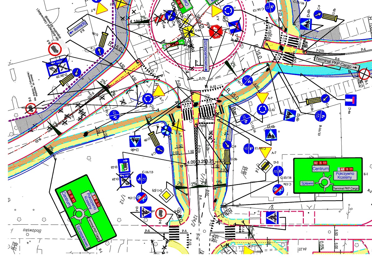 Zajmujemy się także wykonywaniem projektów stałej organizacji ruchu. Przedmiotem finalnym jest dokumentacja projektowa wykonana zgodnie z zamówieniem Zamawiającego (Inwestora) w skład której wchodzi projekt oraz zwykle przedmiary i kosztorysy inwestorskie oraz specyfikacje wykonania i odbioru robót. Wszystkie projekty są wykonywane zgodnie z przepisami polskiego prawa i przed wydaniem posiadają wszelkie potrzebne uzgodnienia.